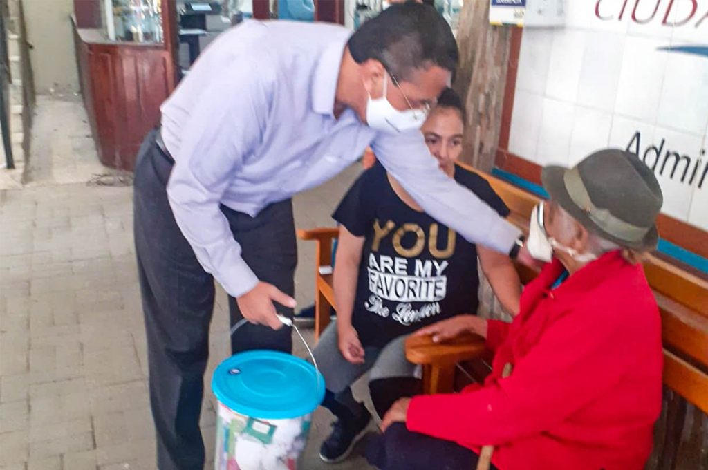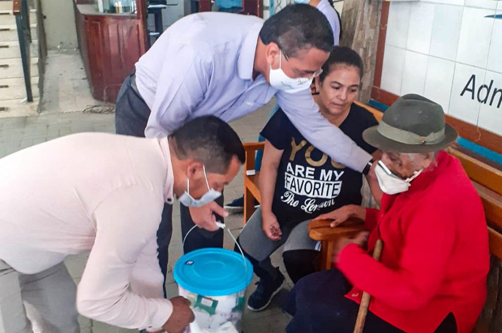 El alcalde Oswaldo Zúñiga movido por su corazón solidario se encontró en el ingreso principal al edificio municipal con una mujer de la tercera edad. Luego de saludarla y conversar brevemente le donó sendos kits de alimentos y aseo. Este hecho ratifica su actitud permanente con los ciudadanos, que es una práctica de vida. En este acto estuvo presente el concejal Oswaldo Díaz.