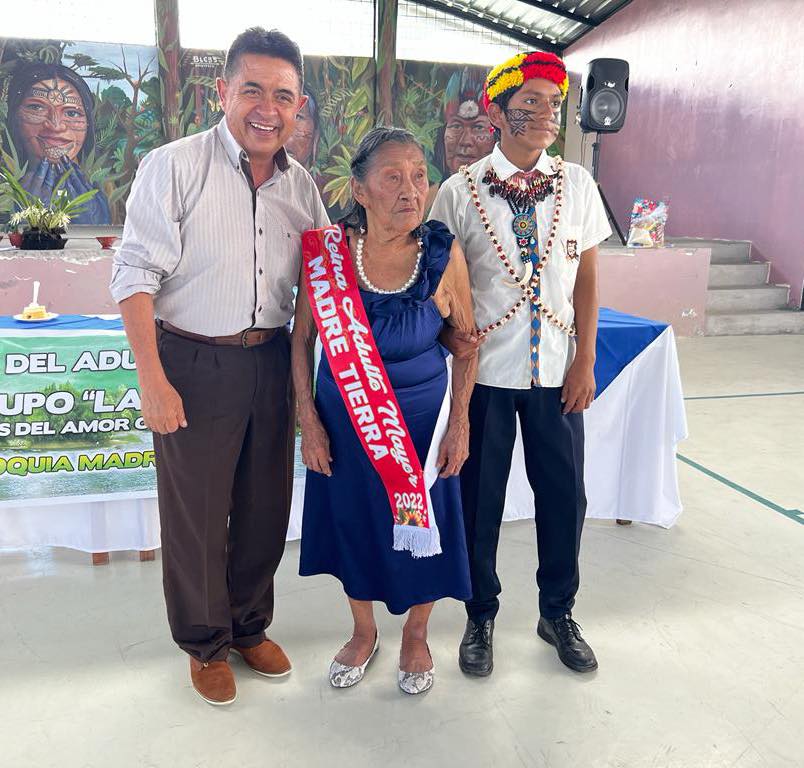 El Arq. Guidmon Tamayo, alcalde de Mera, en compañía de su Sra. Esposa, Leslie Guerrero, presidenta del Patronato Municipal, participaron de la invitación realizada por el GAD Parroquial de Madre Tierra, en lo que corresponde al agasajo de los Adultos Mayores, evento que tuvo cita en el coliseo parroquial.