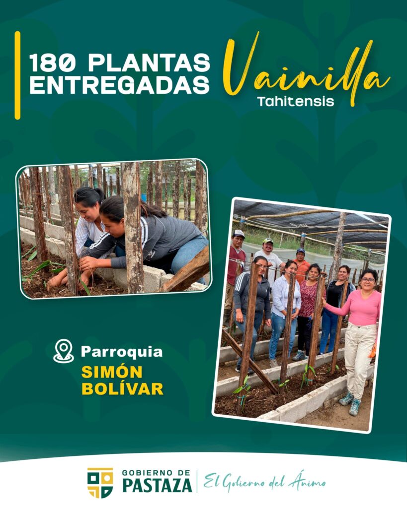 En el sector El Paraíso, parroquia Simón Bolívar se realizó la entrega de 180 plantas de Vainilla Tahitensis como parte de la cadena de valor y de la siembra bajo invernadero.