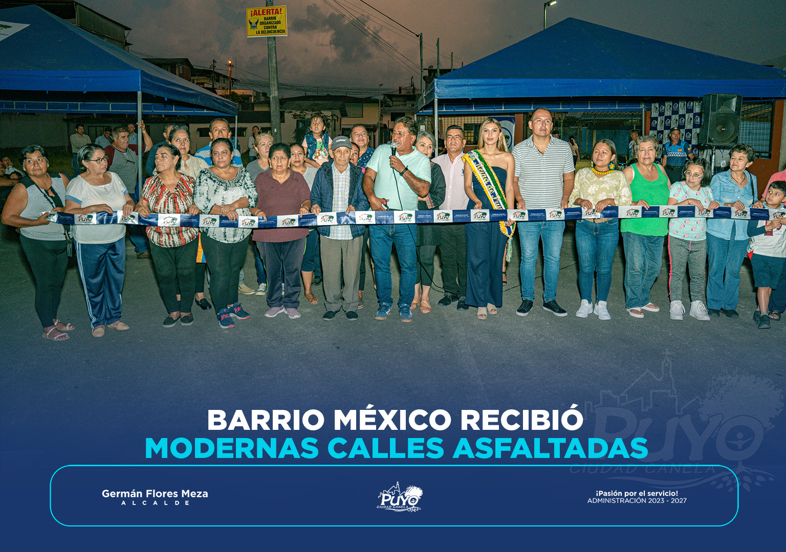 En un acto oficial, el alcalde Germán Flores Meza, entregó formalmente a los vecinos del barrio México el proyecto de asfaltado e infraestructura hidrosanitaria de las calles Lucindo Ortega y Jacinto Dávila. Durante el evento el alcalde destacó que su principal misión es servir a la ciudad y responder con obras a las necesidades de los ciudadanos.