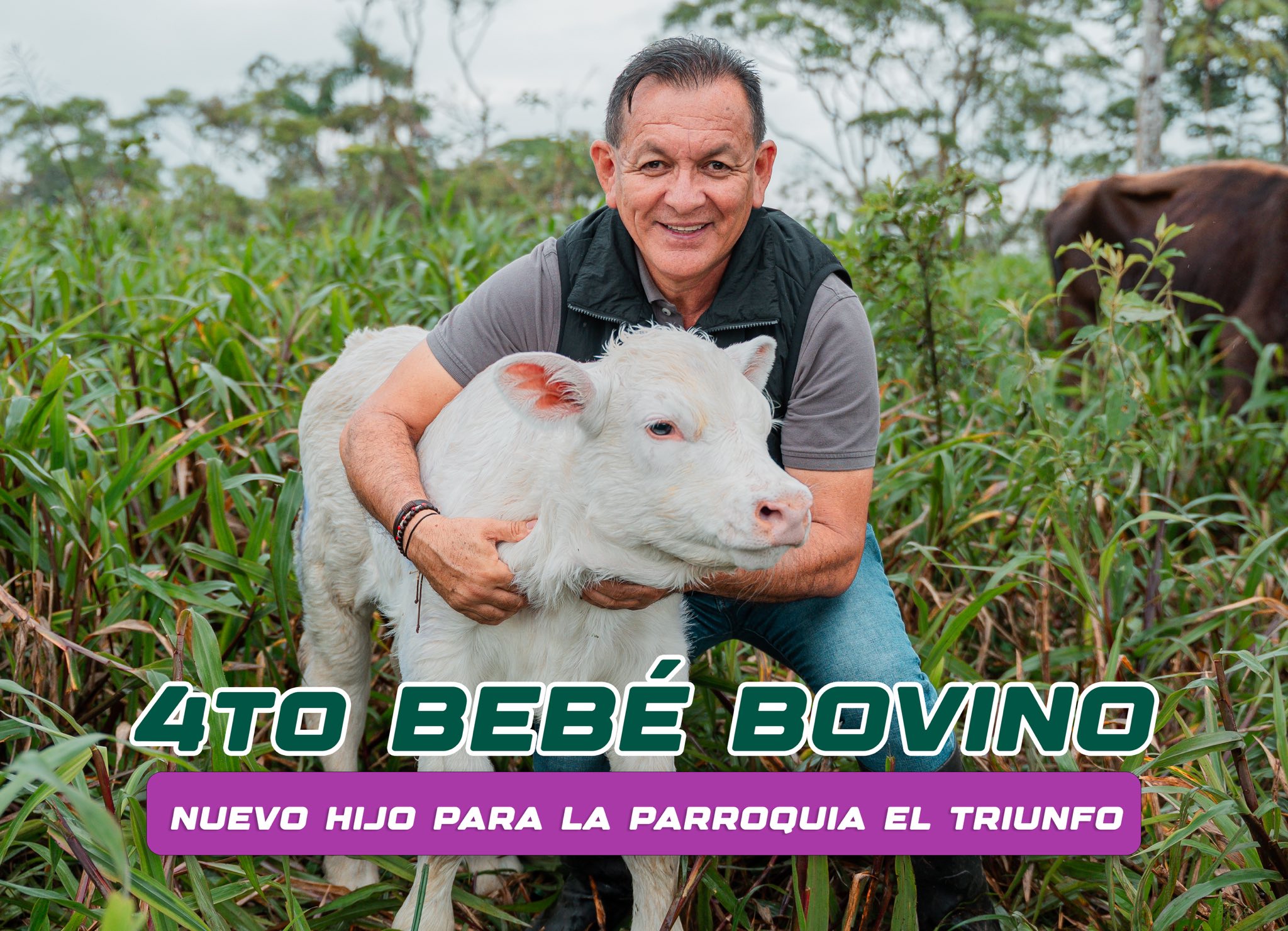 El Gobierno de Pastaza celebra el nacimiento del cuarto ternerito, logrado gracias a la transferencia de embriones y al trabajo técnico liderado por Patricio García Director de Desarrollo Sustentable junto a especialistas y técnicos en las parroquias bajo la directriz del Prefecto Andre Granda.