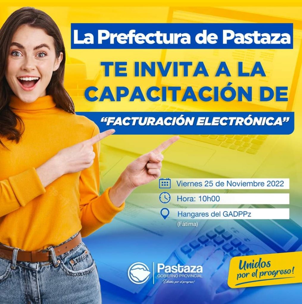 Invitamos a emprendedores, comerciantes y público en general a la jornada de Capacitación gratuita en Facturación Electrónica a desarrollarse el viernes 25 de noviembre de 2022 a partir de las 10 de la mañana en los hangares de nuestra institución, ubicados en la parroquia Fátima.