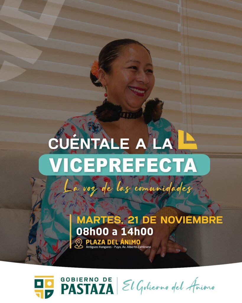 Este martes en la Plaza del Ánimo (antiguos hangares de la Av. Alberto Zambrano), Lineth Calapucha, Viceprefecta, atenderá a nuestros ciudadanos.