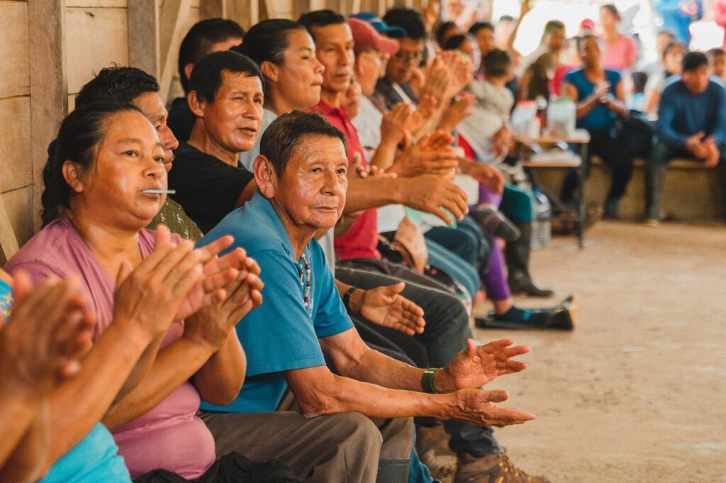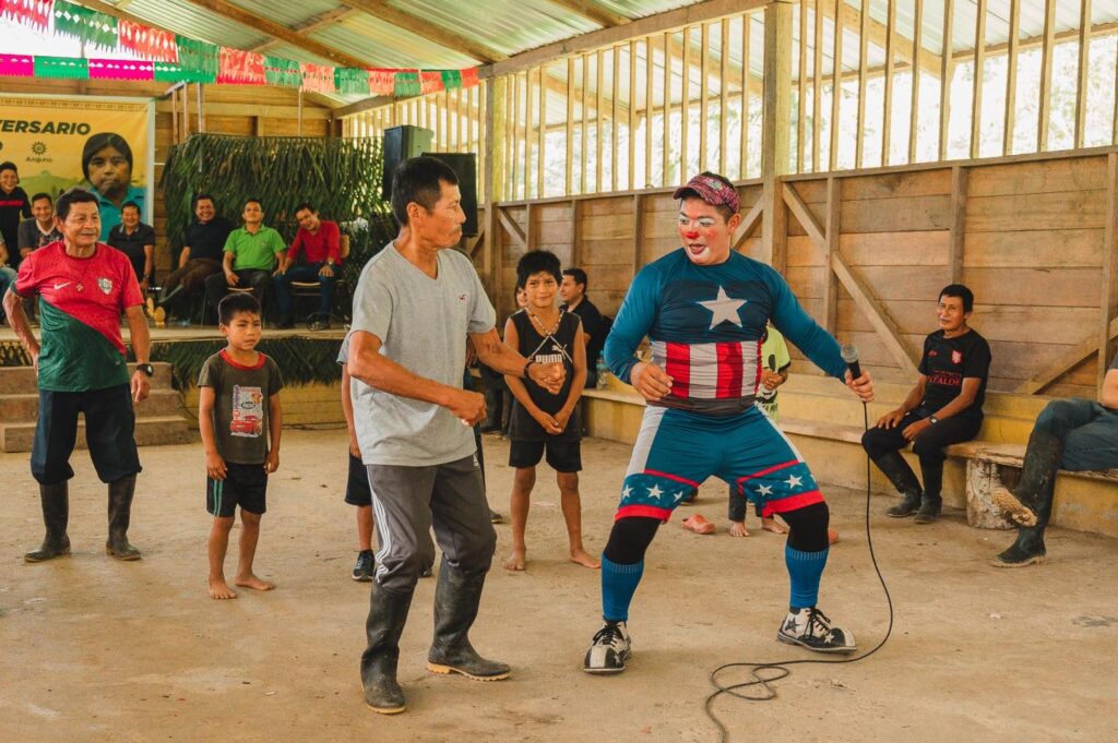 Luego del cruce del río Arajuno y caminata sobre la espesa selva, el equipo técnico del Gobierno de Pastaza y Patronato Provincial, llegó a compartir los 44 años de aniversario de creación de la comunidad Juan Vicente. ![]()