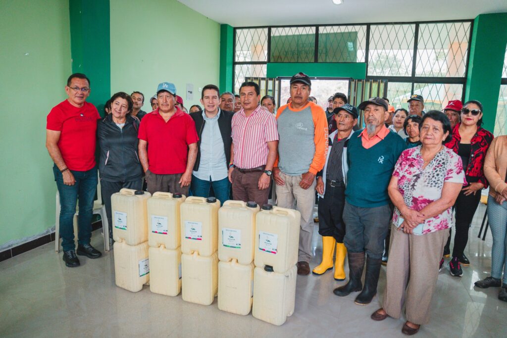 Tres mil litros de biol fueron entregados en presencia del presidente del Gobierno Parroquial Henry Grefa por parte del Prefecto de Pastaza André Granda a los productores de Papa China de la Parroquia Teniente Hugo Ortiz. ![]()
