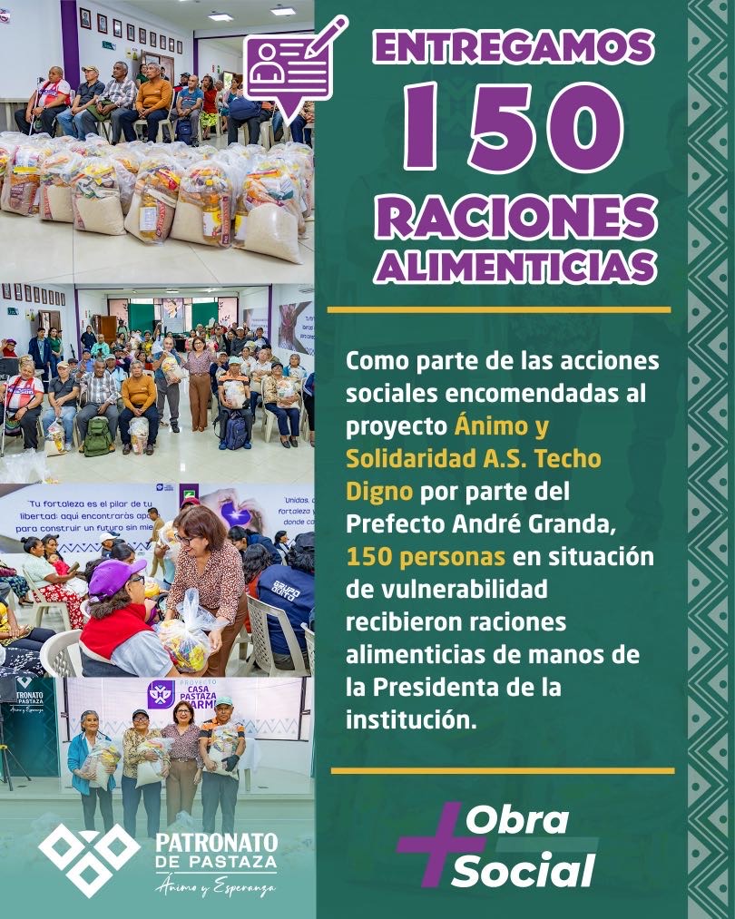 Realizamos la entrega de 150 raciones alimenticias a los beneficiarios del proyecto “Ánimo y Solidaridad Asistencia Social Techo Digno”, como parte de nuestras actividades permanentes.