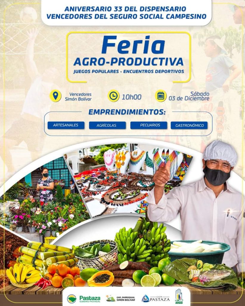 La Prefectura de Pastaza te invita este sábado 03 de diciembre a la Feria Agro Productiva Vencedores 2022, apoya a los productores de nuestra provincia y consume lo nuestro.