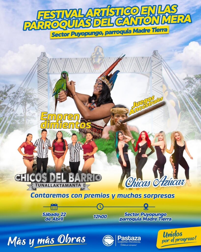 Este sábado 22 de abril desde las 12 horas, todos invitados a la entrega oficial del puente carrozable sobre el río Puyo, sector Puyupungo, una obra emblemática qué marcará historia en el desarrollo provincial. Acompáñanos y disfruta del mejor show artístico bailable con la calidad y garantía de la Prefectura de Pastaza. ¡Lo que ofrecimos Cumplimos! #UnidosPorPastaza #UnidosPorElProgreso #Pastaza
