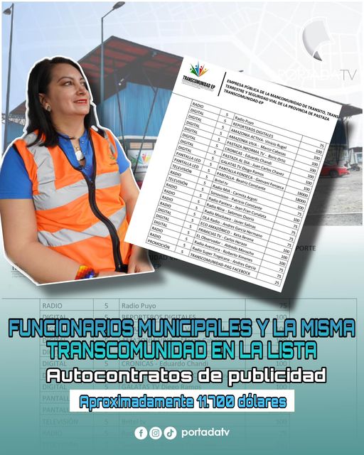 La Transcomunidad lo vuelve a hacer, a pocas horas de su rendición de cuentas sale a la luz el proceso que ha iniciado la institución para contratación de publicidad en los medios de comunicación. Según la información varios medios no convencionales pertenecen a funcionarios del Gad. Municipal que aparecen como dueños de las páginas que esperan contratar e incluso también se AUTOCONTRATA a la página de Facebook de la Empresa Municipal de Tránsito.