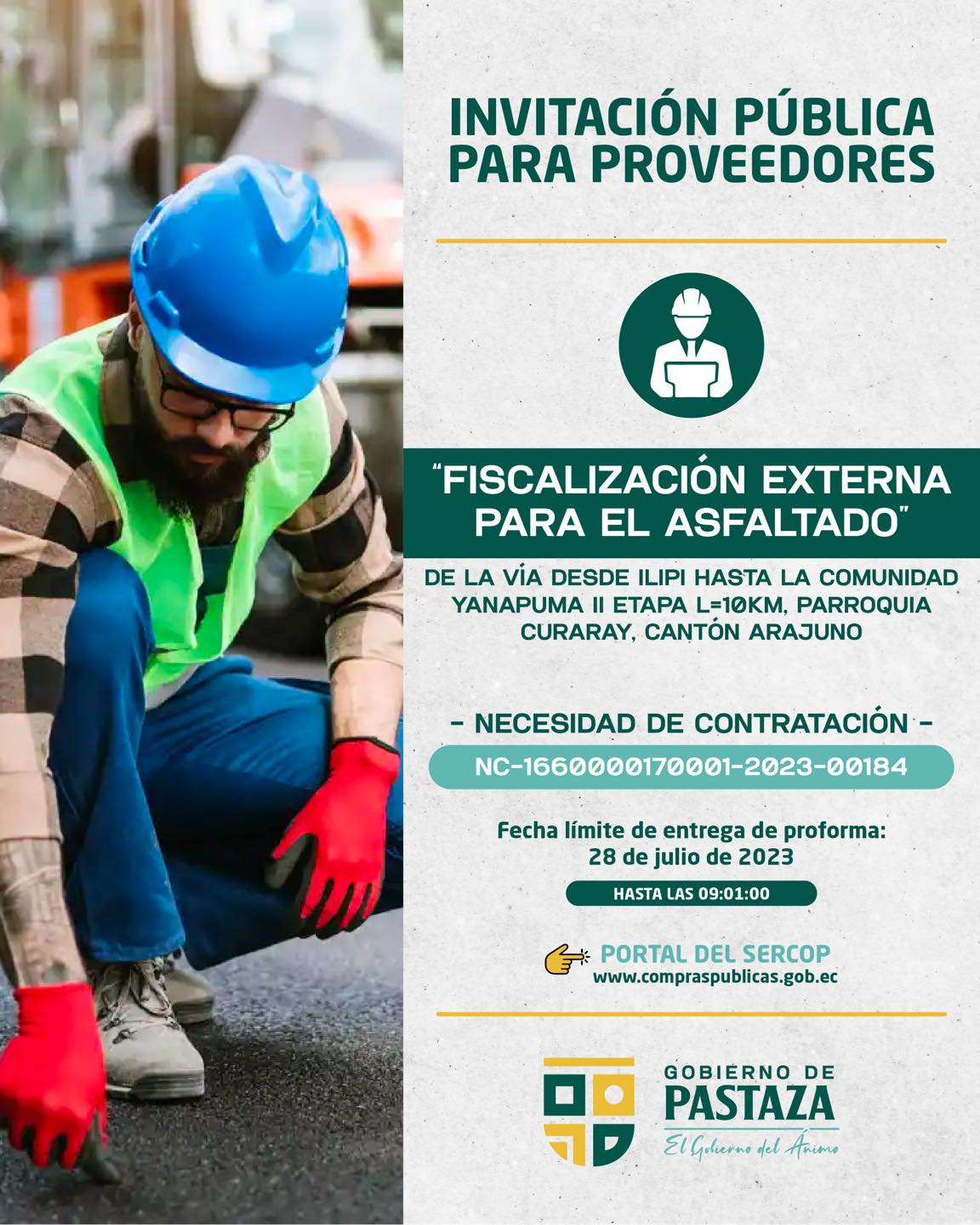Invitación a los proveedores que brindan el servicio de fiscalización de obras viales