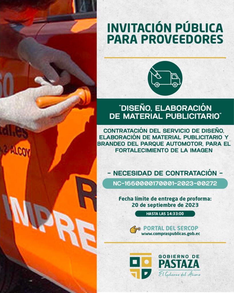 CONTRATACIÓN DEL SERVICIO DE DISEÑO, ELABORACIÓN DE MATERIAL PUBLICITARIO Y BRANDEO DEL PARQUE AUTOMOTOR, PARA EL FORTALECIMIENTO DE LA IMAGEN