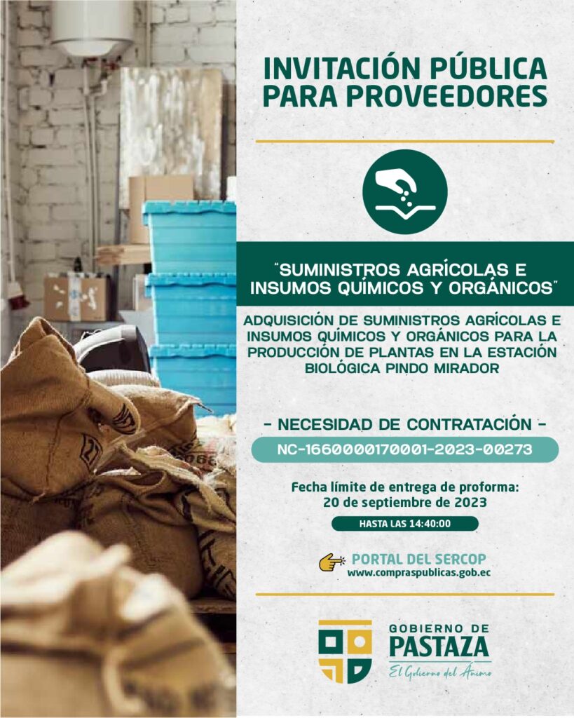 📍Link para participar: https://www.compraspublicas.gob.ec/ProcesoContratacion/compras/NCO/NCORegistroDetalle.cpe?&id=8PkZEVZSGE4NxdjjK5i8vBrLFNJ3wB5HW-mGY4ppwKU,&op=1