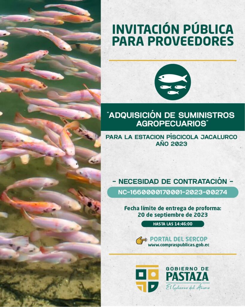 ADQUISICIÓN DE SUMINISTROS AGROPECUARIOS PARA LA ESTACION PÍSCICOLA JACALURCO AÑO 2023
