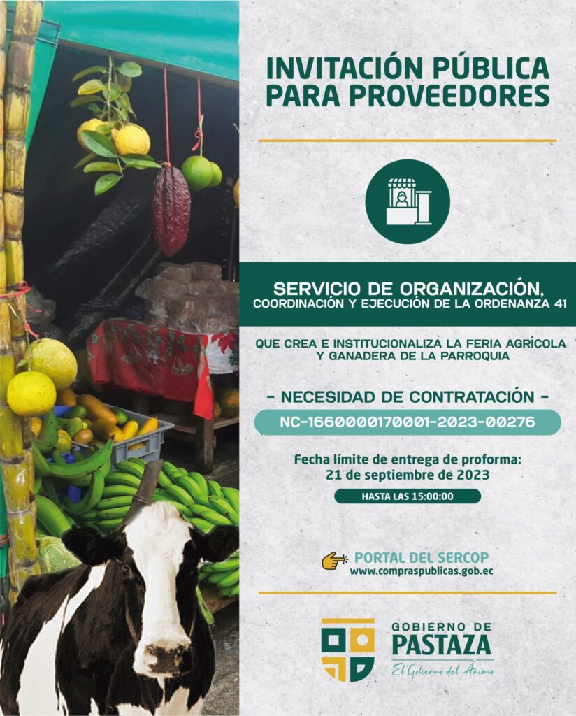 SERVICIO DE ORGANIZACIÓN, COORDINACIÓN Y EJECUCIÓN DE LA ORDENANZA 41 QUE CREA E INSTITUCIONALIZA LA FERIA AGRÍCOLA Y GANADERA DE LA PARROQUIA