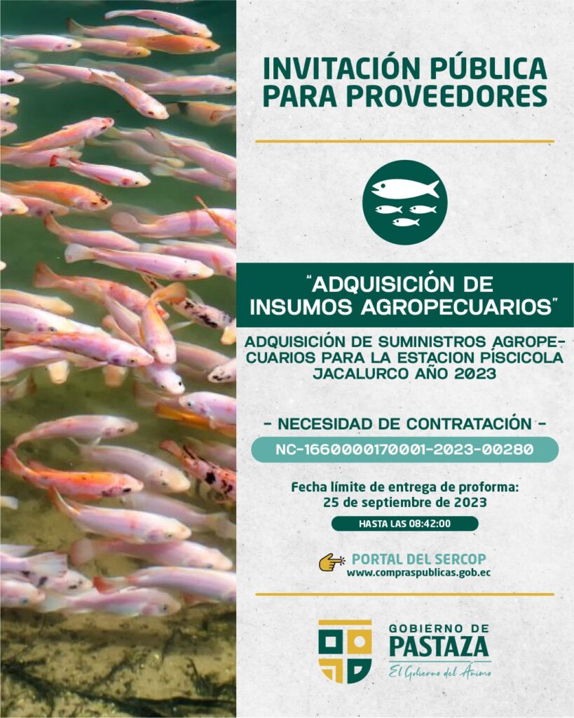 ADQUISICIÓN DE SUMINISTROS AGROPECUARIOS PARA LA ESTACION PÍSCICOLA JACALURCO AÑO 2023