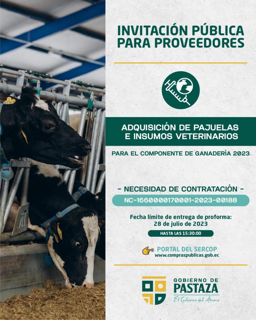 ADQUISICIÓN DE PAJUELAS E INSUMOS VETERINARIOS PARA EL COMPONENTE DE GANADERÍA 2023