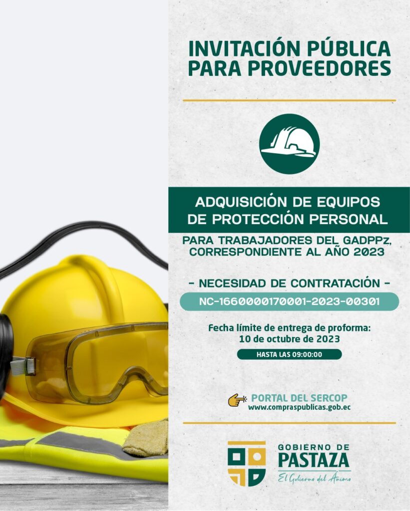 Objeto de compra: ADQUISICIÓN DE EQUIPOS DE PROTECCIÓN PERSONAL PARA ñ TRABAJADORES DEL GADPPz, CORRESPONDIENTE AL AÑO 2023