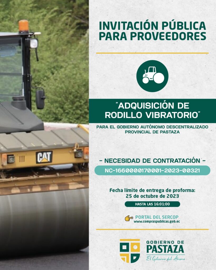 ADQUISICIÓN DE RODILLO VIBRATORIO PARA EL GOBIERNO AUTÓNOMO DESCENTRALIZADO PROVINCIAL DE PASTAZA
