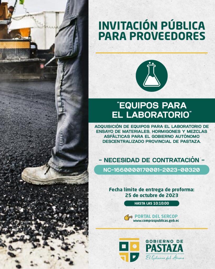 ADQUISICIÓN DE EQUIPOS PARA EL LABORATORIO DE ENSAYO DE MATERIALES, HORMIGONES Y MEZCLAS ASFÁLTICAS PARA EL GOBIERNO AUTÓNOMO DESCENTRALIZADO PROVINCIA