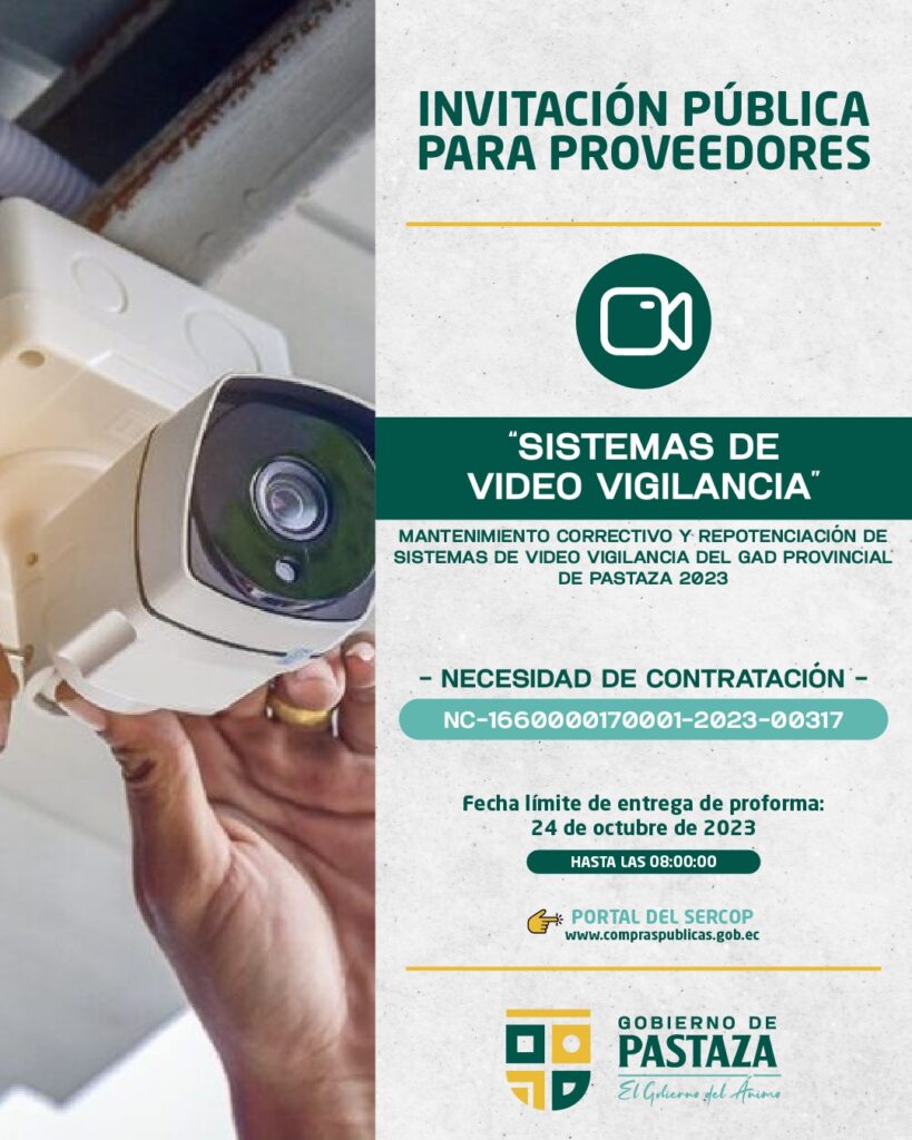 MANTENIMIENTO CORRECTIVO Y REPOTENCIACIÓN DE SISTEMAS DE VIDEO VIGILANCIA DEL GAD PROVINCIAL DE PASTAZA 2023