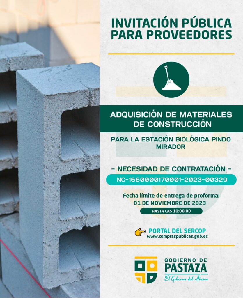 Link para participar: https://www.compraspublicas.gob.ec/ProcesoContratacion/compras/NCO/NCORegistroDetalle.cpe?&id=0PM8i9b5DCOxHvgKd0Eawmg7zV4lxD4a5ENOu-y9_4Q,&op=1