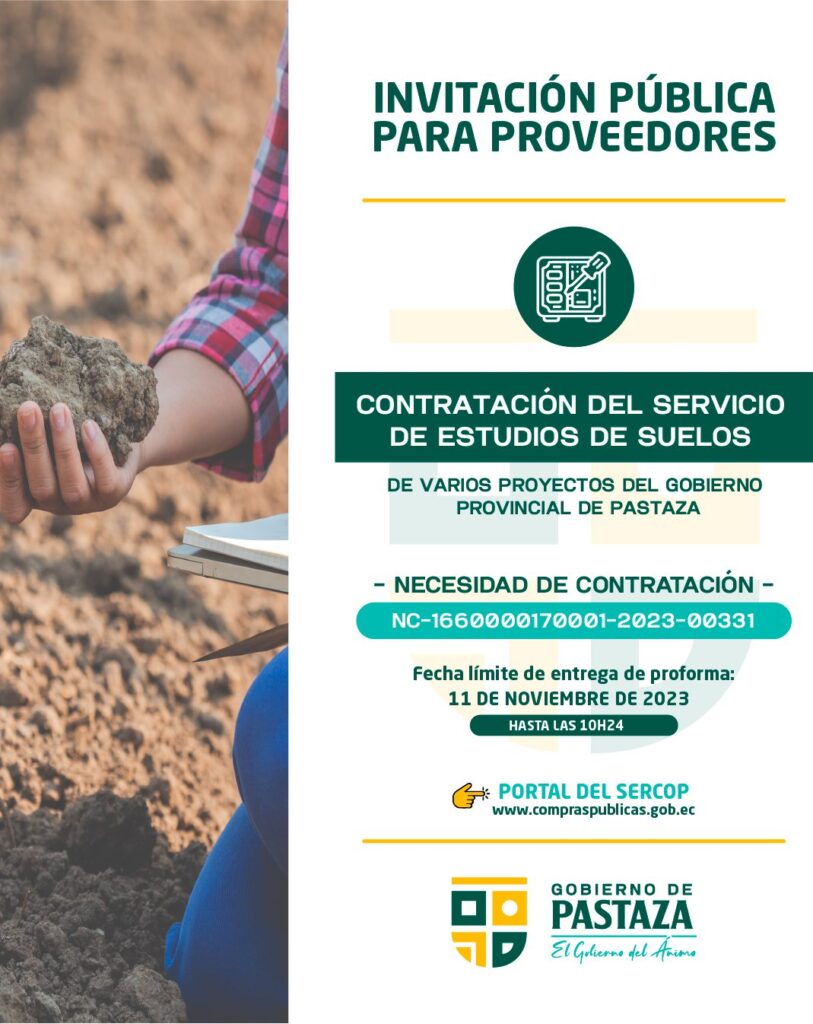 CONTRATACIÓN DEL SERVICIO DE ESTUDIOS DE SUELOS DE VARIOS PROYECTOS DEL GOBIERNO PROVINCIAL DE PASTAZA