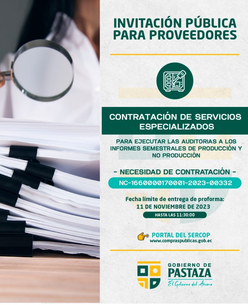Link para participar: https://www.compraspublicas.gob.ec/ProcesoContratacion/compras/NCO/NCORegistroDetalle.cpe?&id=NmPDzN_BtUlfPzyeg7YFbGFO1VzddXBAQTtLYZ1n6zg,&op=1