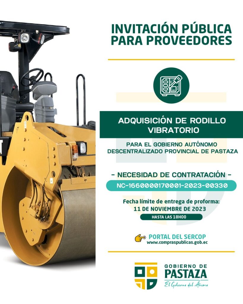 ADQUISICIÓN DE RODILLO VIBRATORIO PARA EL GOBIERNO AUTÓNOMO DESCENTRALIZADO PROVINCIAL DE PASTAZA