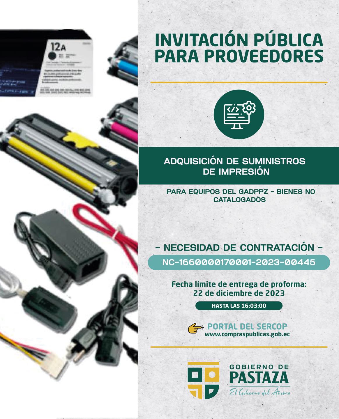 ADQUISICIÓN DE SUMINISTROS DE IMPRESIÓN PARA EQUIPOS DEL GADPPZ – BIENES NO CATALOGADOS