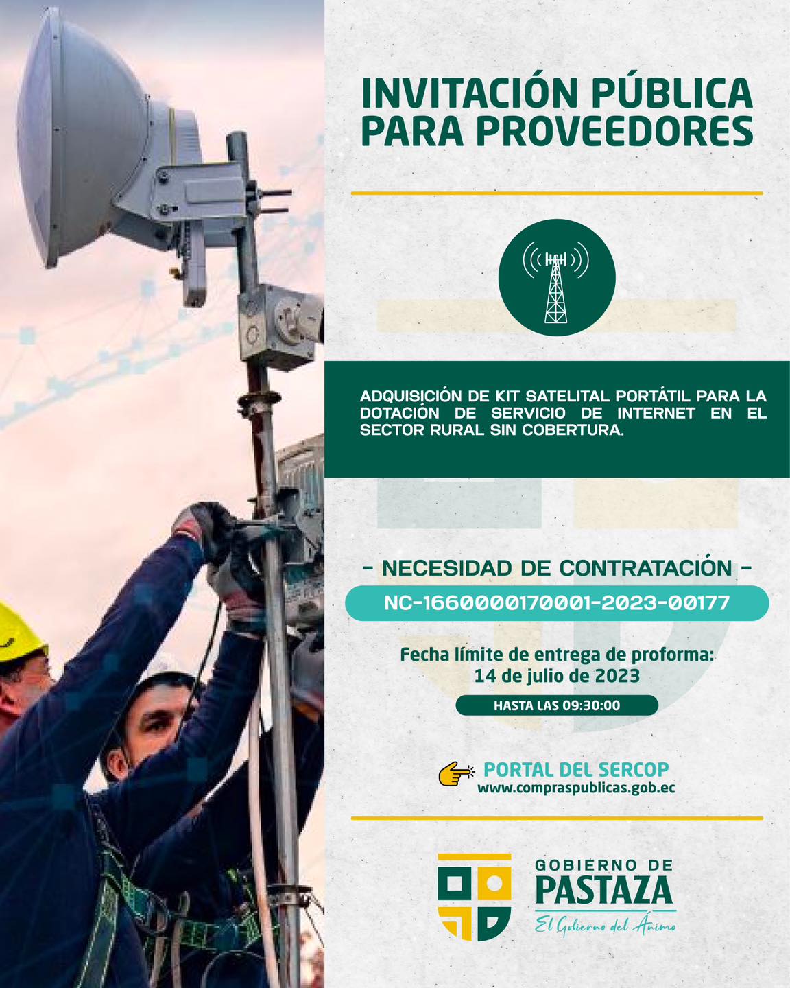 ➡️ ADQUISICIÓN DE KIT SATELITAL PORTÁTIL PARA LA DOTACIÓN DE SERVICIO DE INTERNET EN EL SECTOR RURAL SIN COBERTURA