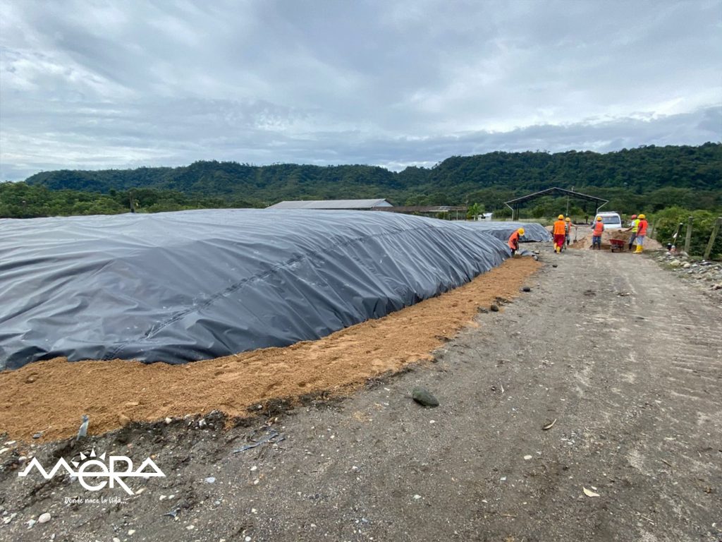 Fiel a la responsabilidad ambiental de su visión, el GAD Municipal de Mera, ha implementado finalmente la colocación de la Geomembrana HDPE (polietileno de alta densidad) en las celdas de disposición final del relleno sanitario de la cabecera cantonal, en el Sector «Las Minas», de ésta forma se da lugar al cierre de los cubetos enfocado a la prevención y mitigación de potenciales daños ambientales.