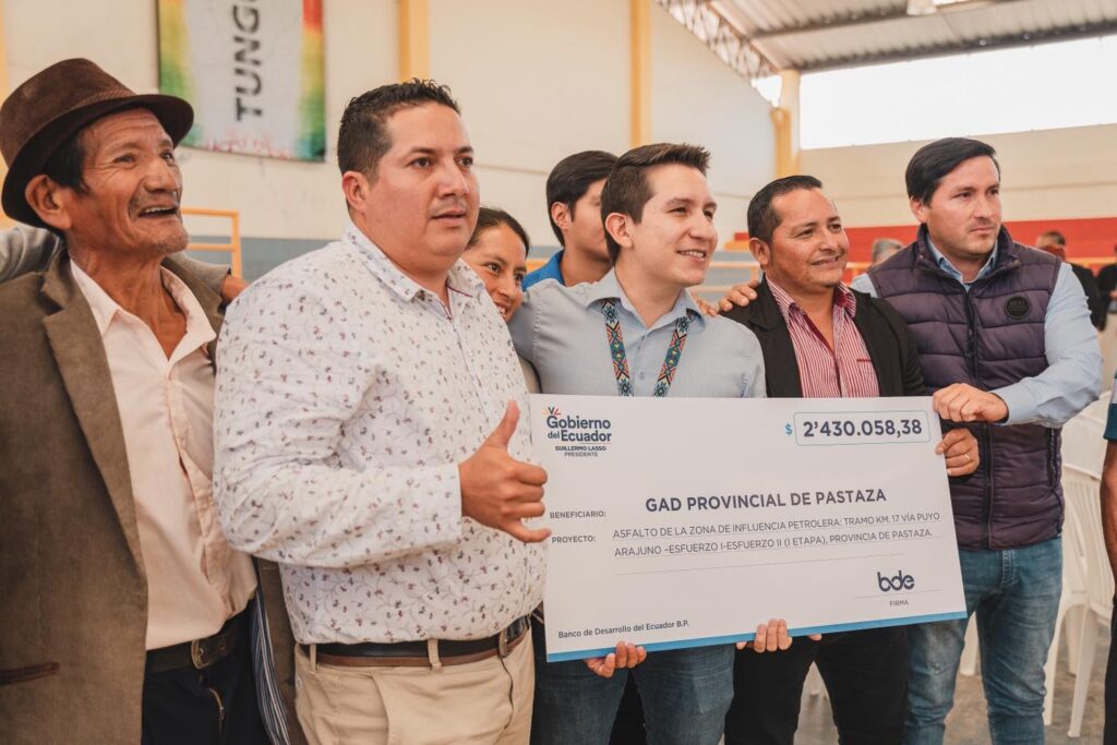 En el coliseo Pilahuín de la ciudad de Ambato, el prefecto André Granda recibió la asignación de $2’430.058,38 no reembolsables para el proyecto de asfaltado del Esfuerzo I y Esfuerzo II en las parroquias 10 de Agosto y El Triunfo ![]()