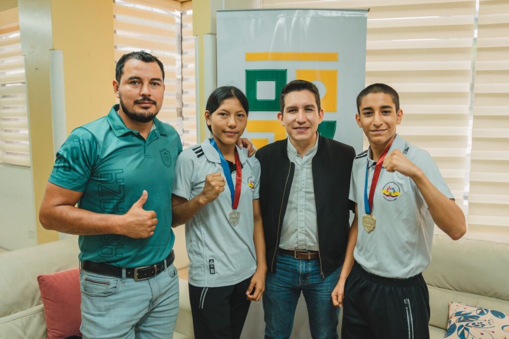 en el campeonato panamericano realizado en Cali 2023 fueron recibidos en la oficina del Gobierno de Pastaza junto a la delegación de boxeo de la Federación Deportiva de Pastaza.