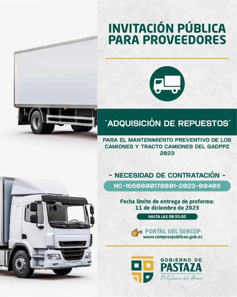 ADQUISICIÓN DE REPUESTOS PARA EL MANTENIMIENTO PREVENTIVO DE LOS CAMIONES Y TRACTO CAMIONES DEL GADPPZ 2023