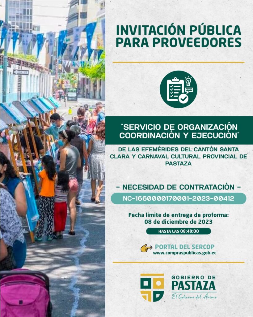 CONTRATACIÓN DEL SERVICIO DE ORGANIZACIÓN, COORDINACIÓN Y EJECUCIÓN DE LAS EFEMÉRIDES DEL CANTÓN SANTA CLARA Y CARNAVAL CULTURAL PROVINCIAL DE PASTAZA