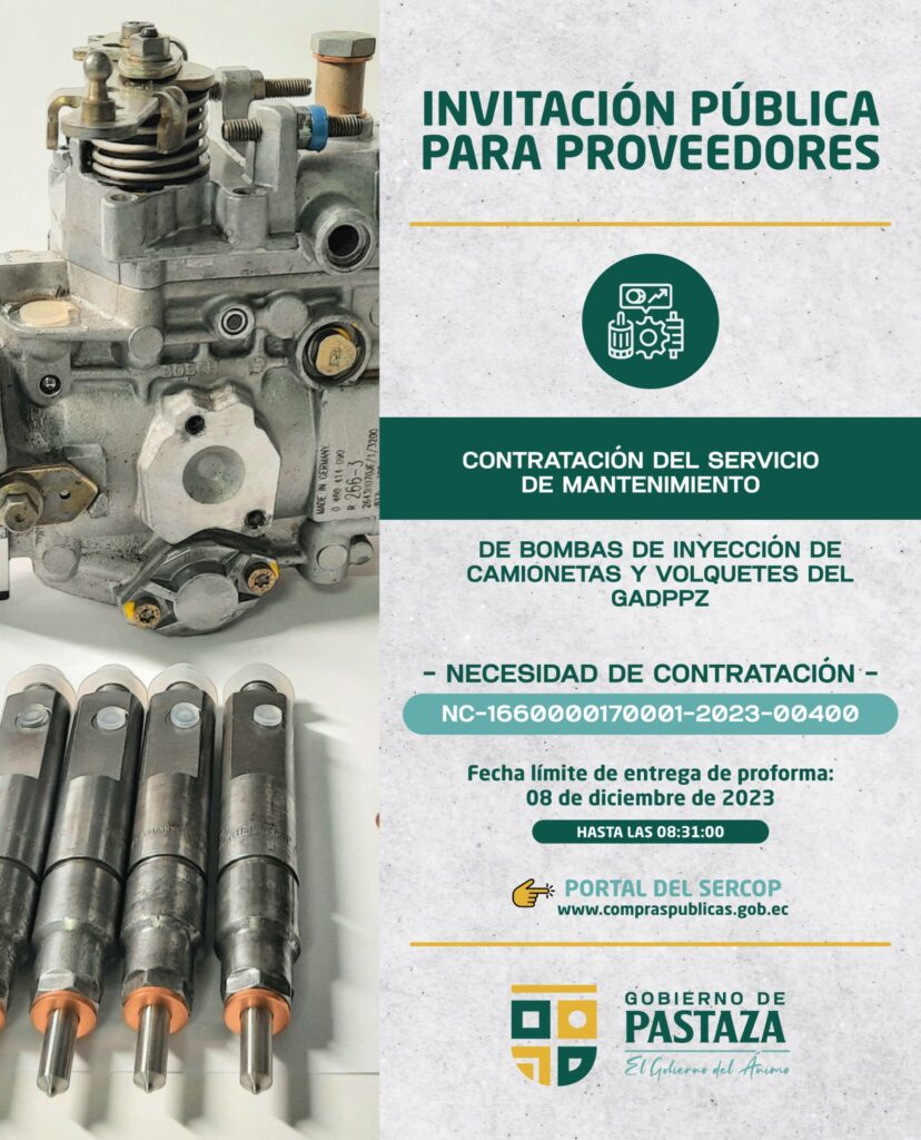 CONTRATACIÓN DEL SERVICIO DE MANTENIMIENTO DE BOMBAS DE INYECCIÓN DE CAMIONETAS Y VOLQUETES DEL GADPPZ