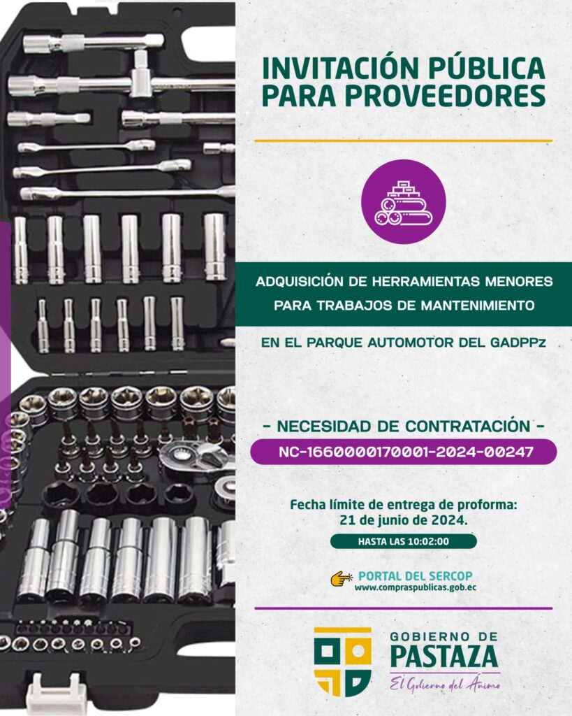 Objeto de compra: ADQUISICIÓN DE HERRAMIENTAS MENORES PARA TRABAJOS DE MANTENIMIENTO EN EL PARQUE AUTOMOTOR DEL GADPPz