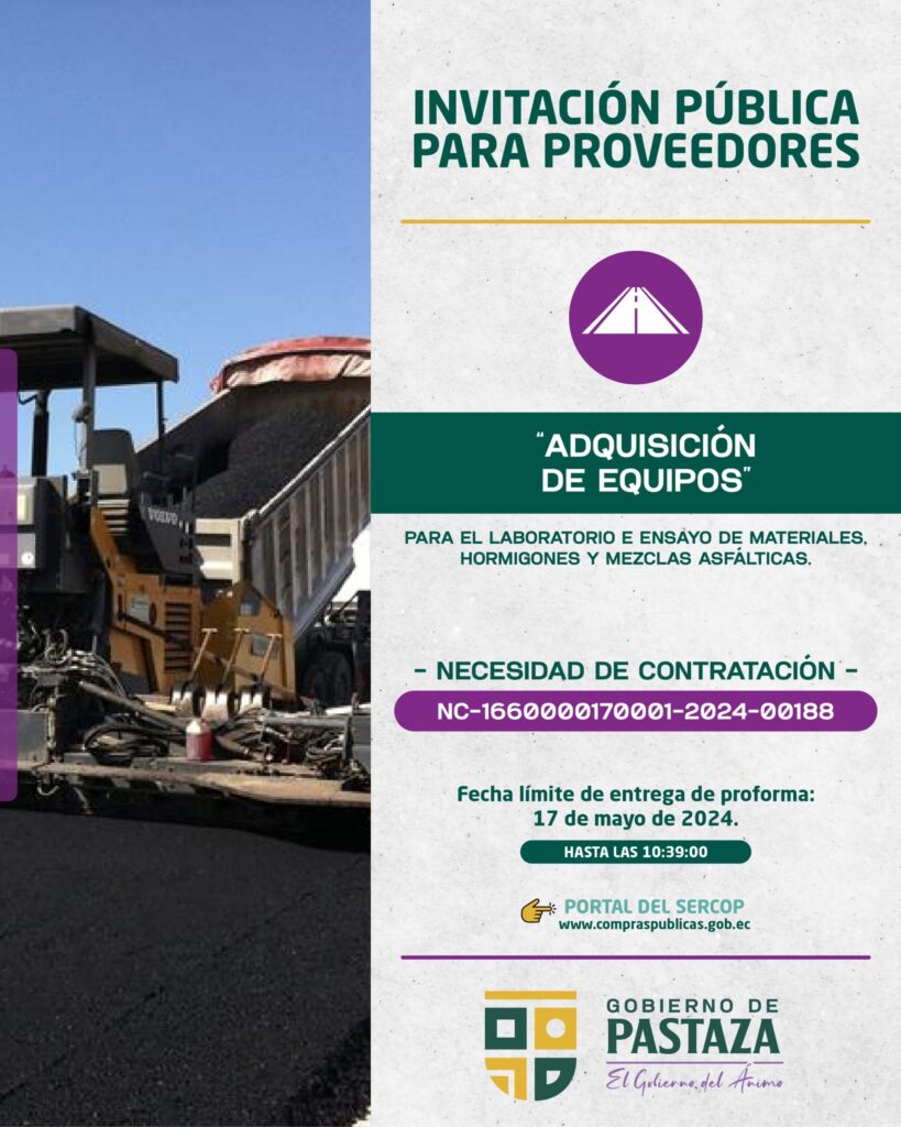 📍Link para participar: https://www.compraspublicas.gob.ec/ProcesoContratacion/compras/NCO/NCORegistroDetalle.cpe?&id=6fmwUqHCemlQDUimcd43TuMlwJ3yhT00alXhUbxuAl0,&op=1