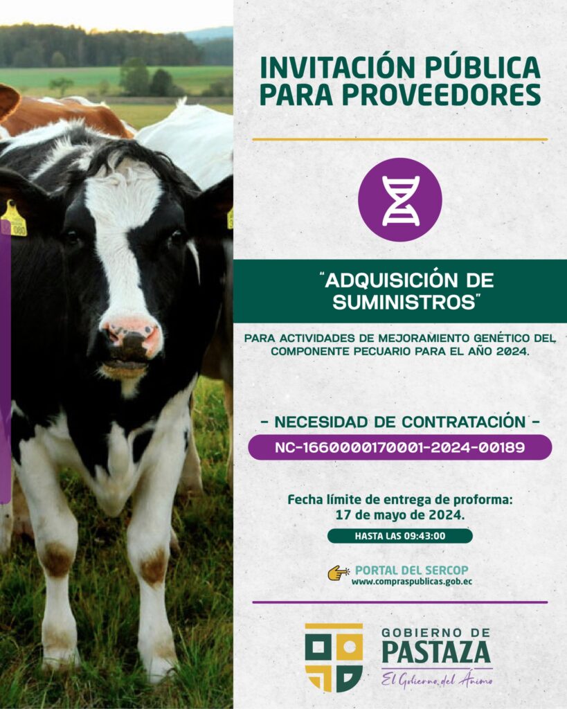 3️⃣Objeto de compra: ADQUISICIÓN DE SUMINISTROS PARA ACTIVIDADES DE MEJORAMIENTO GENÉTICO DEL COMPONENTE PECUARIO PARA EL AÑO 2024