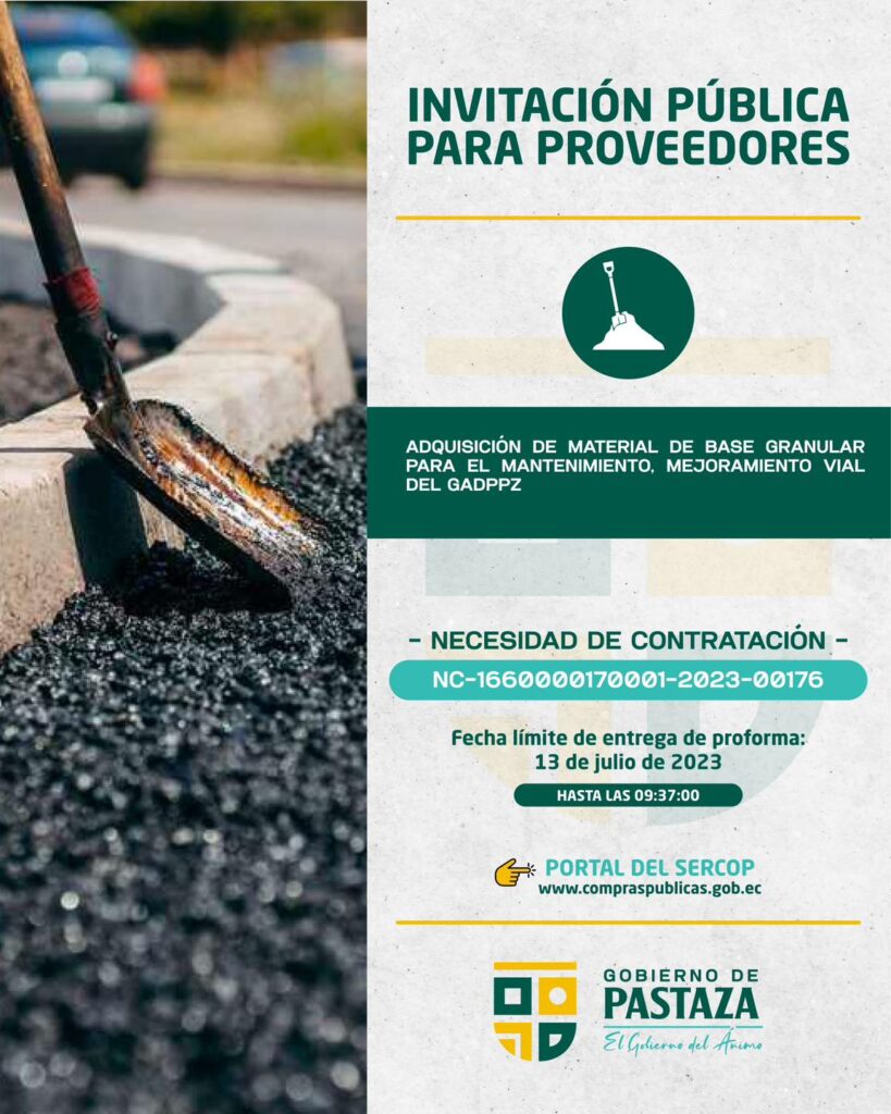 ADQUISICIÓN DE MATERIAL DE BASE GRANULAR PARA EL MANTENIMIENTO, MEJORAMIENTO VIAL DEL GADPPZ