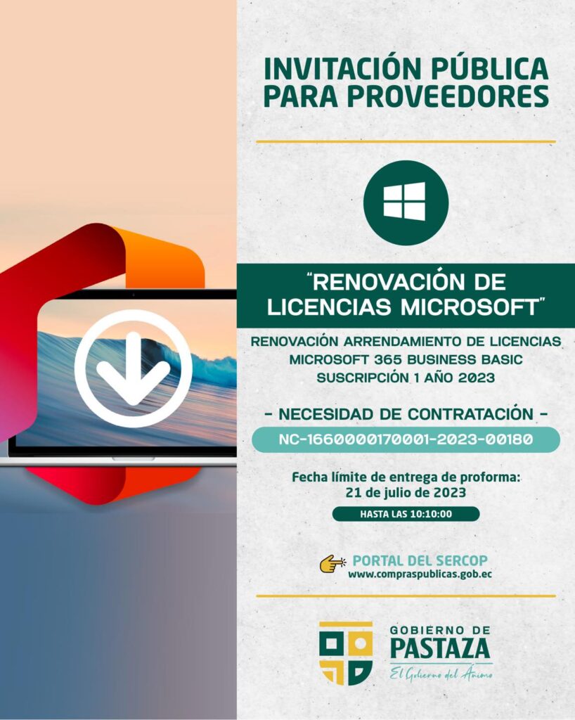 ➡️ RENOVACIÓN ARRENDAMIENTO DE LICENCIAS MICROSOFT 365 BUSINESS BASIC SUSCRIPCIÓN 1 AÑO 2023 🖥️