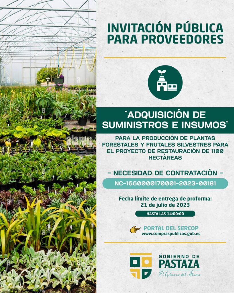 ➡️ ADQUISICIÓN DE SUMINISTROS E INSUMOS PARA LA PRODUCCIÓN DE PLANTAS FORESTALES Y FRUTALES SILVESTRES PARA EL PROYECTO DE RESTAURACIÓN DE 1100 HECTÁREAS 🌿