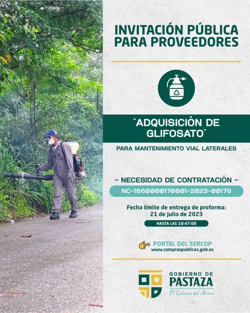 ➡️ ADQUISICIÓN DE GLIFOSATO PARA MANTENIMIENTO VIAL LATERALES 🚧