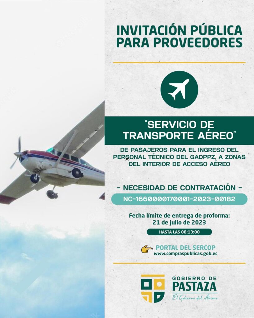 ➡️ SERVICIO DE TRANSPORTE AÉREO DE PASAJEROS PARA EL INGRESO DEL PERSONAL TÉCNICO DEL GADPPZ, A ZONAS DEL INTERIOR DE ACCESO AÉREO 🛫