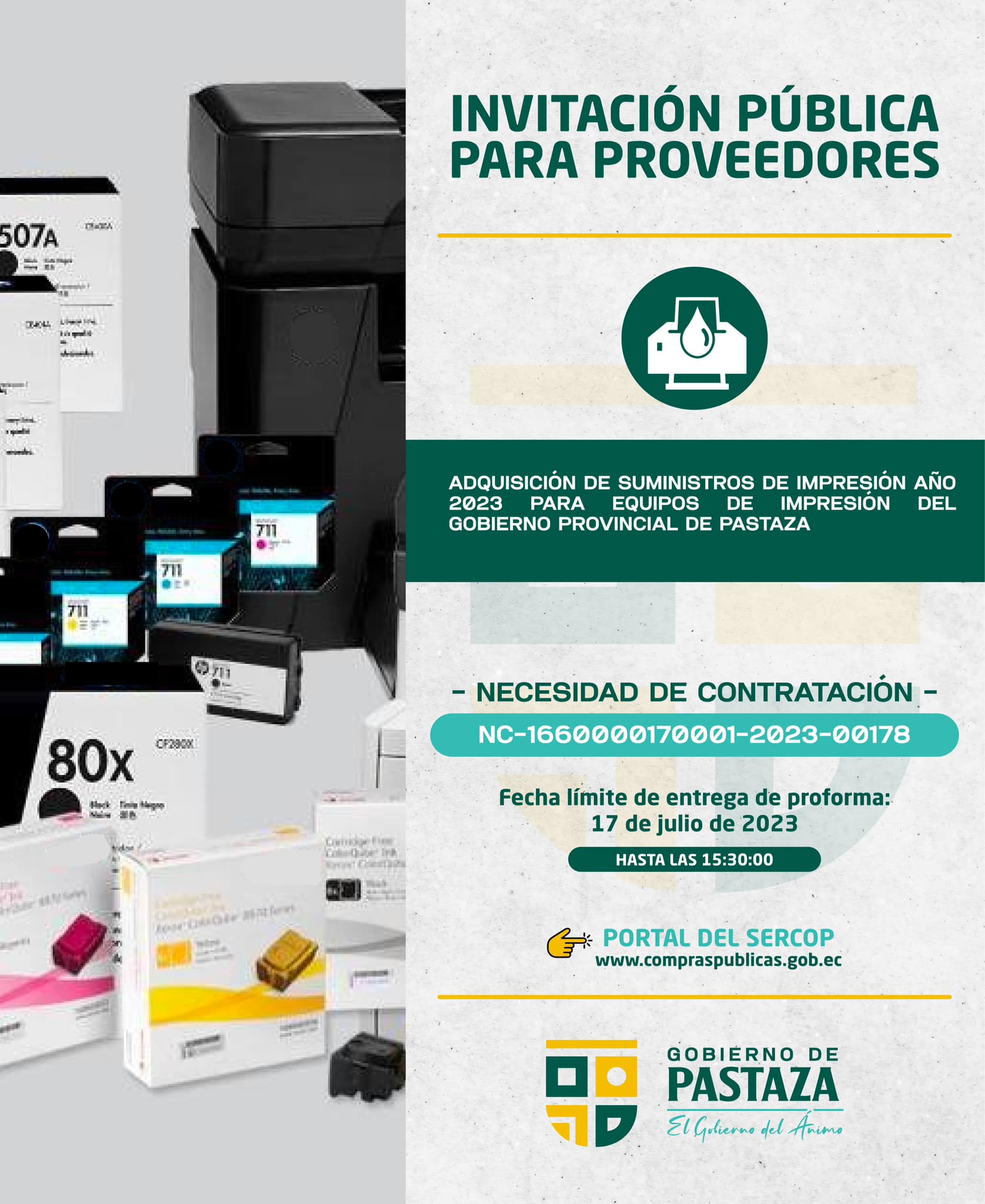 ADQUISICIÓN DE SUMINISTROS DE IMPRESIÓN AÑO 2023 PARA EQUIPOS DE IMPRESIÓN DEL GOBIERNO PROVINCIAL DE PASTAZA