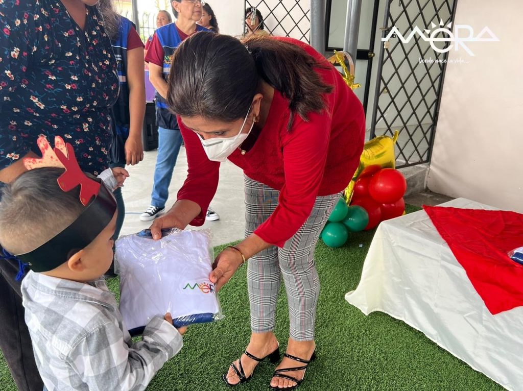 El Municipio de Mera, representado por el Arq. Guidmon Tamayo, alcalde, conjuntamente con el Patronato Municipal, representado por la Sra. Leslie Guerrero, han realizado la entrega de 162 conjuntos deportivos en todos los Centros de Desarrollo Infantil del cantón, en esta ocasión visitaron Caritas de Dios y Los Camilitos, en la parroquia Shell.