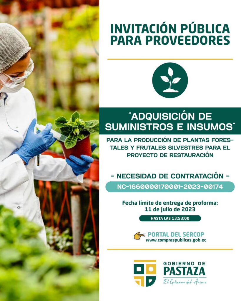 ADQUISICIÓN DE SUMINISTROS E INSUMOS PARA LA PRODUCCIÓN DE PLANTAS FORESTALES Y FRUTALES SILVESTRES PARA EL PROYECTO DE RESTAURACIÓN ![]()