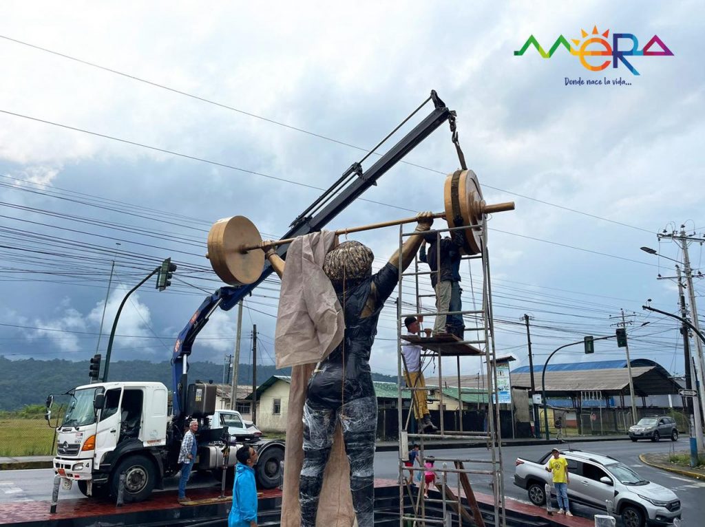 Gracias a la gestión del Arq. Guidmon Tamayo, alcalde de Mera, te presentamos el avance de obra en lo que corresponde a la “Construcción a la gesta olímpica 2021”, en la parroquia Shell, una obra en reconocimiento a Neisi Dajomes, por todos sus logros obtenidos y por dejar el nombre de la parroquia en lo alto, el proceso de este monumento lo ha desarrollado el artista Paúl Toledo, oriundo de la provincia de Pastaza, quién comentó que se realizaron tomas fotográficas a Neisi y de ahí se llevó a un proceso de plasmarlo en arcilla, sacar moldes, pulir, unir las piezas y demás procesos que han realizado entre 11 jóvenes, por lo que este monumento lo realizaron en fibra de vidrio y que en los próximos días será entregado a la ciudadanía.