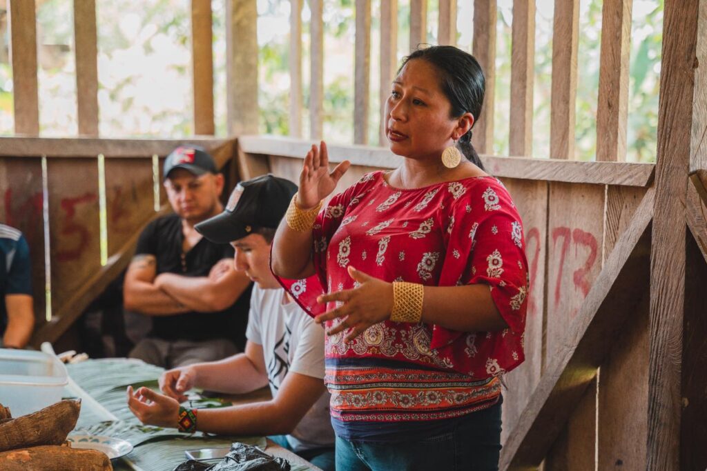 Luego de más de una hora de caminata llegamos hasta la comunidad Selva Alegre, de la parroquia Sarayaku