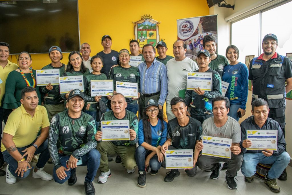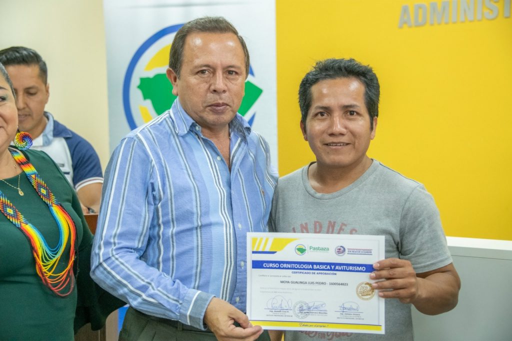 En el auditorio de los hangares de la Prefectura de Pastaza se llevó a cabo la Reunión de la Mesa de Turismo de la provincia de Pastaza, donde se desarrolló la entrega de personería jurídica a la Asociación de Producción Artesanal Arte – sanitas para la conservación ASOPROARPACO, clausuras de los cursos de “Ornitología y aviturismo”, y “Formación de Guías Turísticos” locales con la entrega de sus respectivos certificados, finalmente también se inauguró y se dio inicio al evento “5° conteo navideño de aves en la provincia de Pastaza 2022”. En el acto estuvo presente el Prefecto de la provincia, en su intervención felicitó a quienes fueron parte de los talleres y felicitó por el trabajo desplegado en el ámbito turístico, “como Gobierno Provincial seguiremos comprometidos en apoyar al sector del turismo, emprendimiento y de esta manera ejecutar las buenas prácticas ambientales”. destacó el Prefecto. ¡Estas son las obras de progreso y desarrollo para Pastaza! #UnidosPorElProgreso #UnidosPorPastaza #Pastaza
